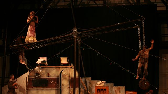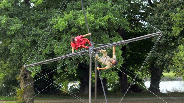 Cirque Hirsute was founded in 2005 by Mathilde Sebald and Damien Gaumet, both trained at ESAC (École Supérieure des Arts du Cirque in Brussels). Cirque Hirsute’s a-typical style is characterized by a combination of traditional circus codes with more contemporary readings filled with poetry and humor. Technical virtuosity rubs shoulders with the unusual, the gentle, the acidic. Ingeniosity is at play in the diversion of familiar objects from their habitual use and in the development of new acrobatic apparatus.
