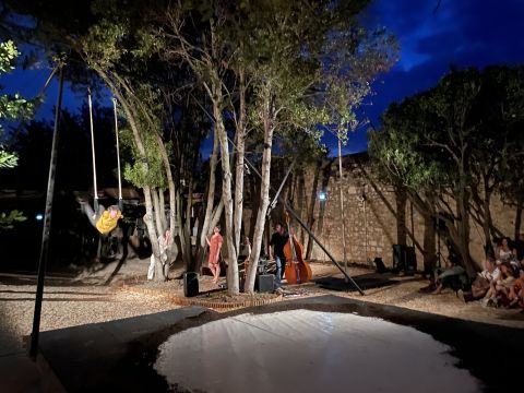 Samedi 25 mai 2024 - Théâtre de Verdure - Céret (66) : Avec: Colline Caen (trapèze), Ode Rosset (mât), Antonio Arbués (acrobate), Benoit Keller (musique et création sonore), Clara Zolesi et Diogo Santos Farias (danse acrobatique)
