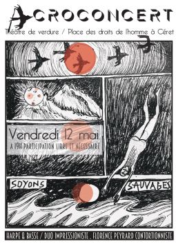 Vendredi 12 mai 2023 - Théâtre de Verdure / Place des droits de l'Homme - Céret (66) : Katell Boisneau et Matthieu Tomi : harpe & basse / Florence Peyrard : contorsionniste