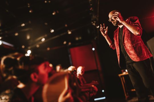 Le « Cardinal Borgne », petit théâtre à l’italienne empli d’objets magiques glanés dans le monde entier, à la fois cabinet de curiosité, cabine de spiritisme et musée des mystères. Un endroit mobile, hors de la réalité, un moment suspendu où la fiction (et le mensonge honnête) devient plus crédible que le réel, plus proche de nos aspirations.