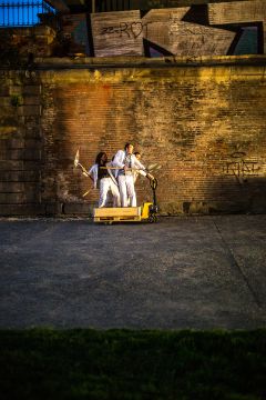 Le collectif G.Bistaki se définit comme un cirque chorégraphique. A la croisée des disciplines (manipulation, danse, théâtre, vidéo…) ils créent un langage universel qui pose un regard amusé sur les failles de notre société.